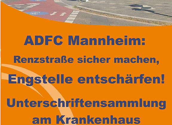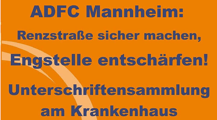 Der ADFC Mannheim begrüßt die geplante Verbesserung des Radwegs an der Renzstraße, fordert aber weitergehende Maßnahmen für mehr Sicherheit. Vom 20.–24. Oktober (jeweils 15 bis 17 Uhr) sammelt der ADFC Unterschriften am Theresienkrankenhaus.