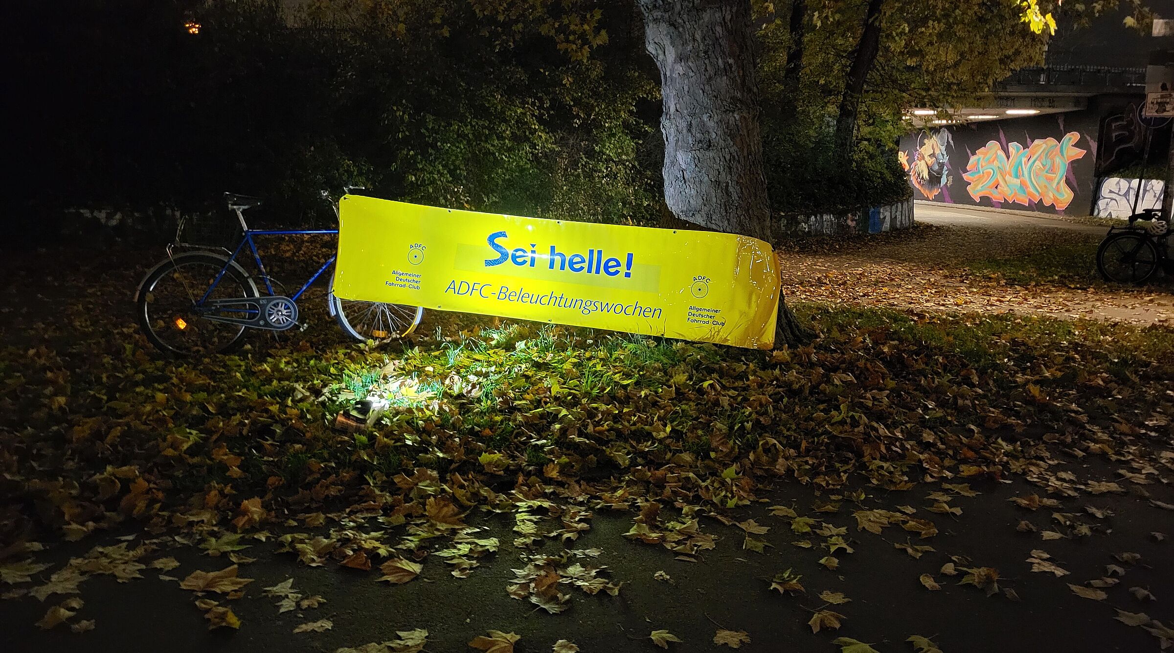 Lichtcheck am Freitagabend an der Konrad‑Adenauer‑Brücke: 263 Begegnungen, 227 Räder mit Licht (86%). Wir gaben Tipps zu Scheinwerfer‑Ausrichtung, Reflektoren und Sichtbarkeit in der dunklen Jahreszeit.