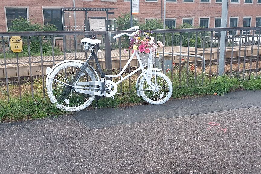 Ein Ghostbike ist ein weiß lackiertes Fahrrad, das als stilles Mahnmal an Unfallstellen aufgestellt wird, an denen Radfahrende tödlich verunglückten. Es erinnert an die Opfer und macht zugleich auf die Notwendigkeit von mehr Sicherheit im Radverkehr aufmerksam.
