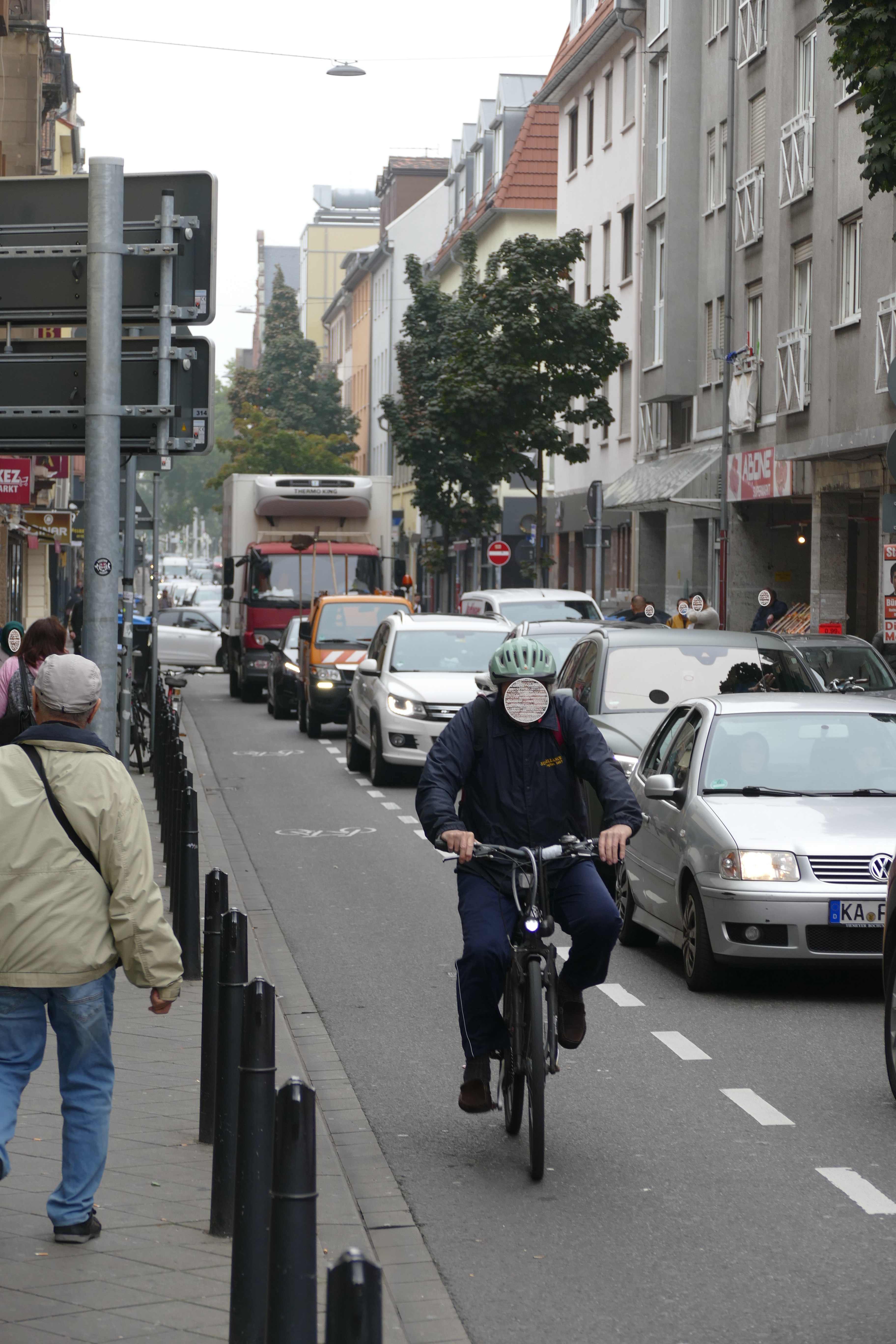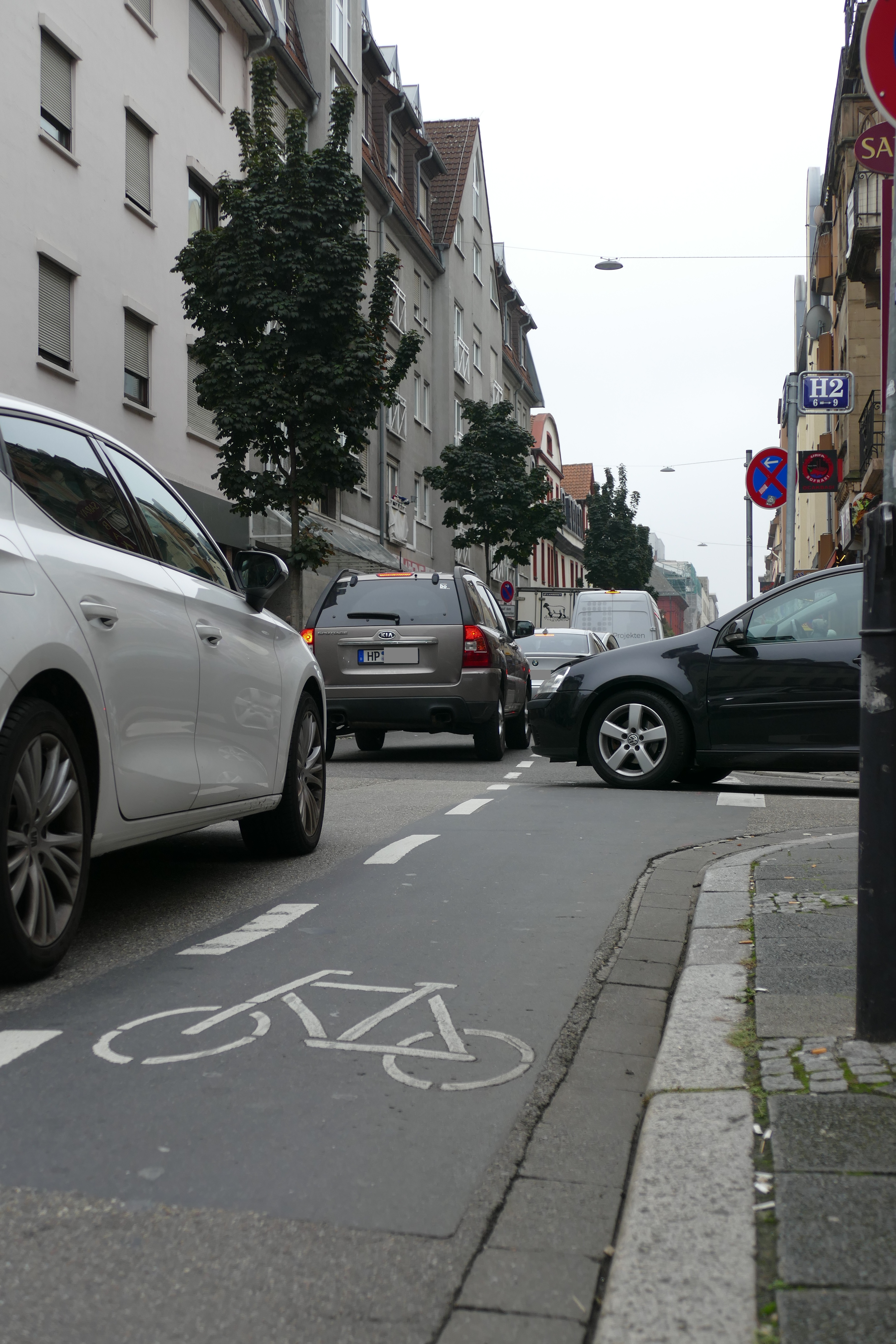 Die gesamte Strecke von der Kurpfalzbrücke über I1/I2, H1/H2 und den Marktplatz bis zum Mannheimer Schloss ist Teil des RadNETZ Baden-Württemberg, das eigentlich „schnelles und sicheres” sowie “komfortables” Fahrradfahren verspricht. Die Realität sieht hier in den Quadraten jedoch anders aus: Der Platz für den Radverkehr ist knapp, die Verkehrsbelastung hoch und die Sichtverhältnisse oft eingeschränkt.
