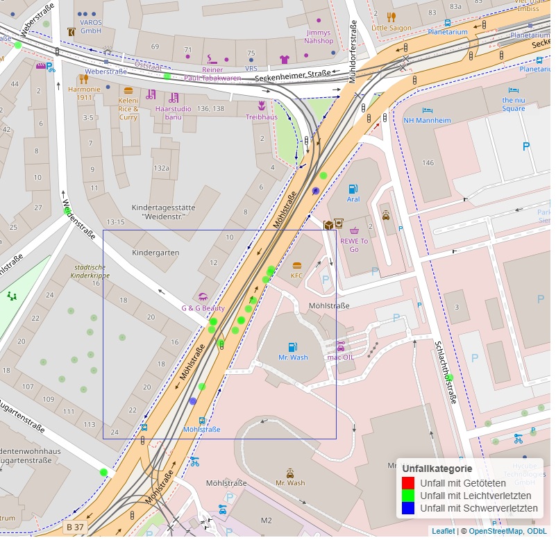 Die Möhlstrase ist nach dem Wegfall des Voltastegs eine von nur zwei möglichen Nord-Süd-Verbindungen Mannheims, die nicht durch die Innenstadt/Schwetzinger Vorstadt führen. Allerdings ist die Situation an der Möhlstraße im Abschnitt zwischen dem Neckarauer Übergang und der Seckenheimer Straße für Radfahrende (und auch Fußgänger) unbefriedigend und ein großer Unfallschwerpunkt für Fahrradfahrende in Mannheim, wie Auswertungen des ADFC Mannheim zeigen (siehe hier und hier). Dafür gibt es unterschiedliche Gründe: