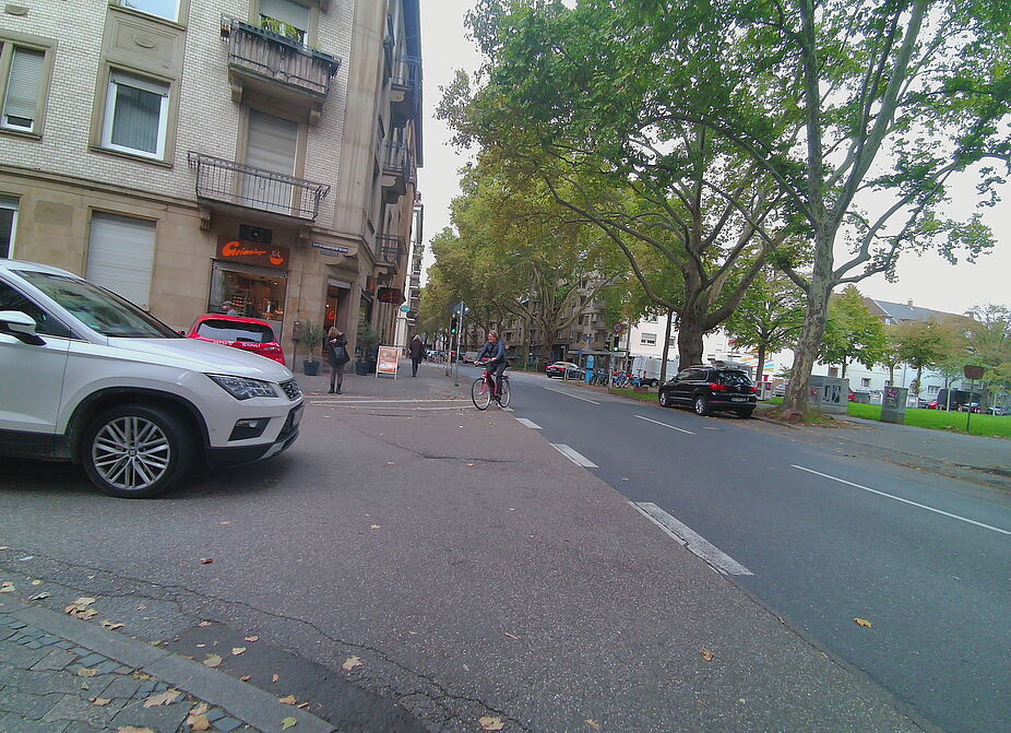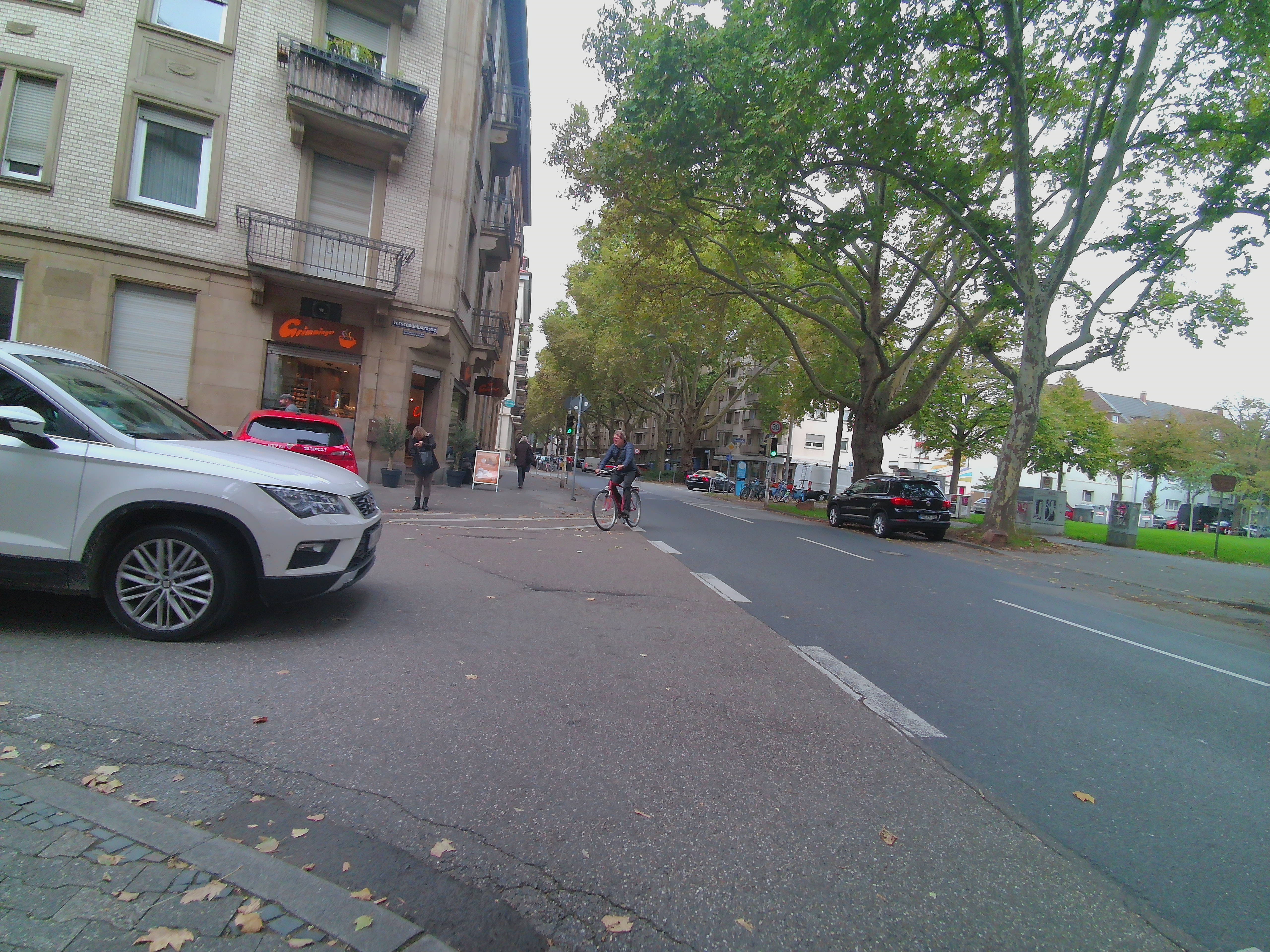 Neben dem hohen Verkehrsaufkommen erschweren parkende Fahrzeuge und Verkehrseinrichtungen wie Leihfahrradstationen die Übersicht an dieser Stelle zusätzlich. Um den nötigen Überblick zu behalten, müssten Autofahrende beim Abbiegen Schrittgeschwindigkeit einhalten, was in der Praxis jedoch selten geschieht.