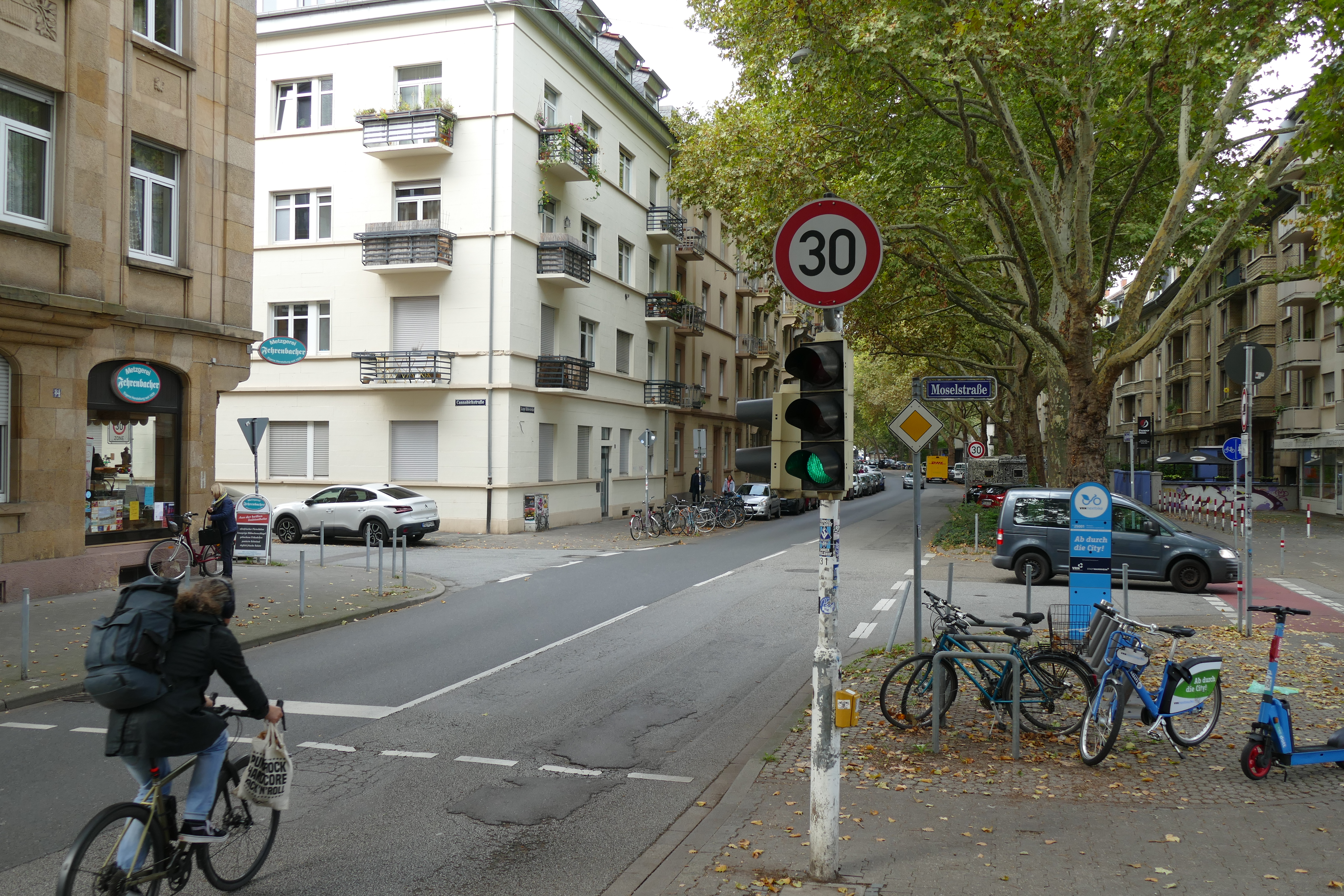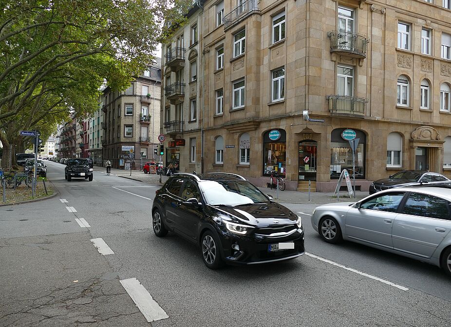 Die Kreuzung Lange Rötterstraße / Moselstraße in der Neckarstadt-Ost zählt zu den gefährlichsten Stellen für Radfahrende in Mannheim. Enge Sichtverhältnisse, hoher Kfz-Verkehr und häufig zu schnelles Abbiegen führen hier immer wieder zu riskanten Situationen.