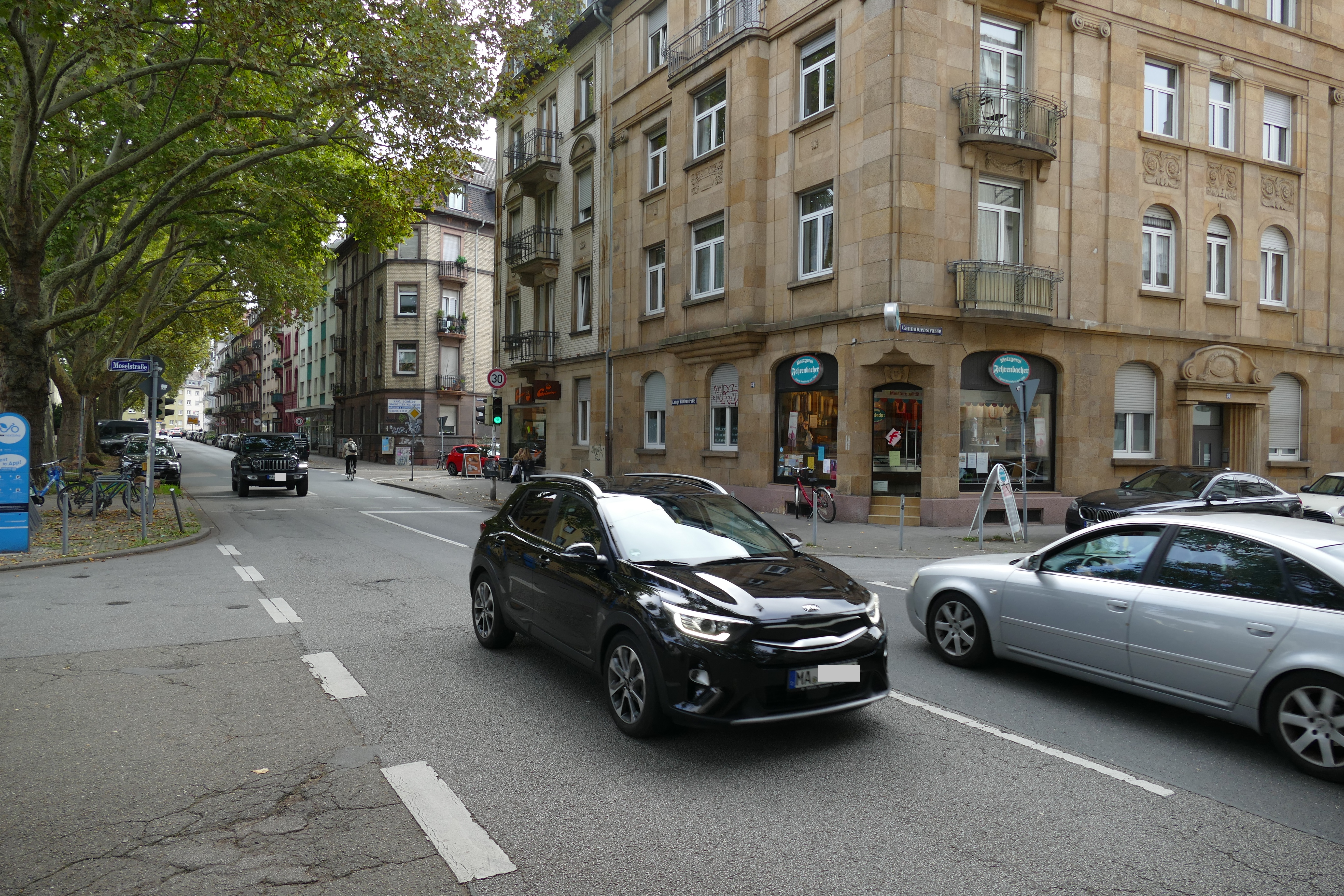 Enge Sicht, dichter Verkehr, viele Unfälle: Die Kreuzung Lange Rötterstraße / Moselstraße ist ein Unfallschwerpunkt für Radfahrende. Und der ADFC Mannheim ruft zur konsequenten Unfallmeldung auf.
