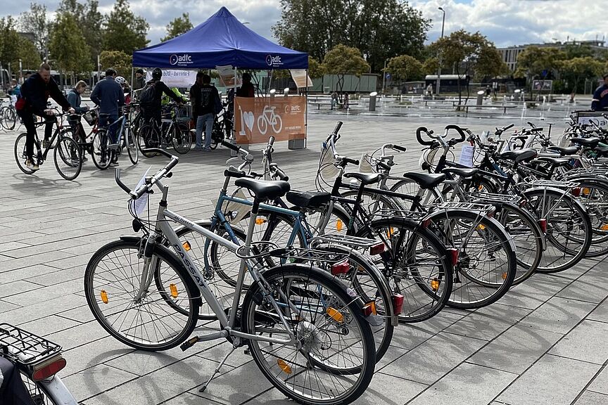 Beim 71. ADFC Gebrauchtradmarkt am 13. September 2025 auf dem Lindenhofplatz können Räder verkauft und diebstahlsicher codiert werden. Außerdem gibt es Infomaterial, Karten und das aktuelle ADFC-Programmheft – ohne Anmeldung, einfach vorbeikommen!
