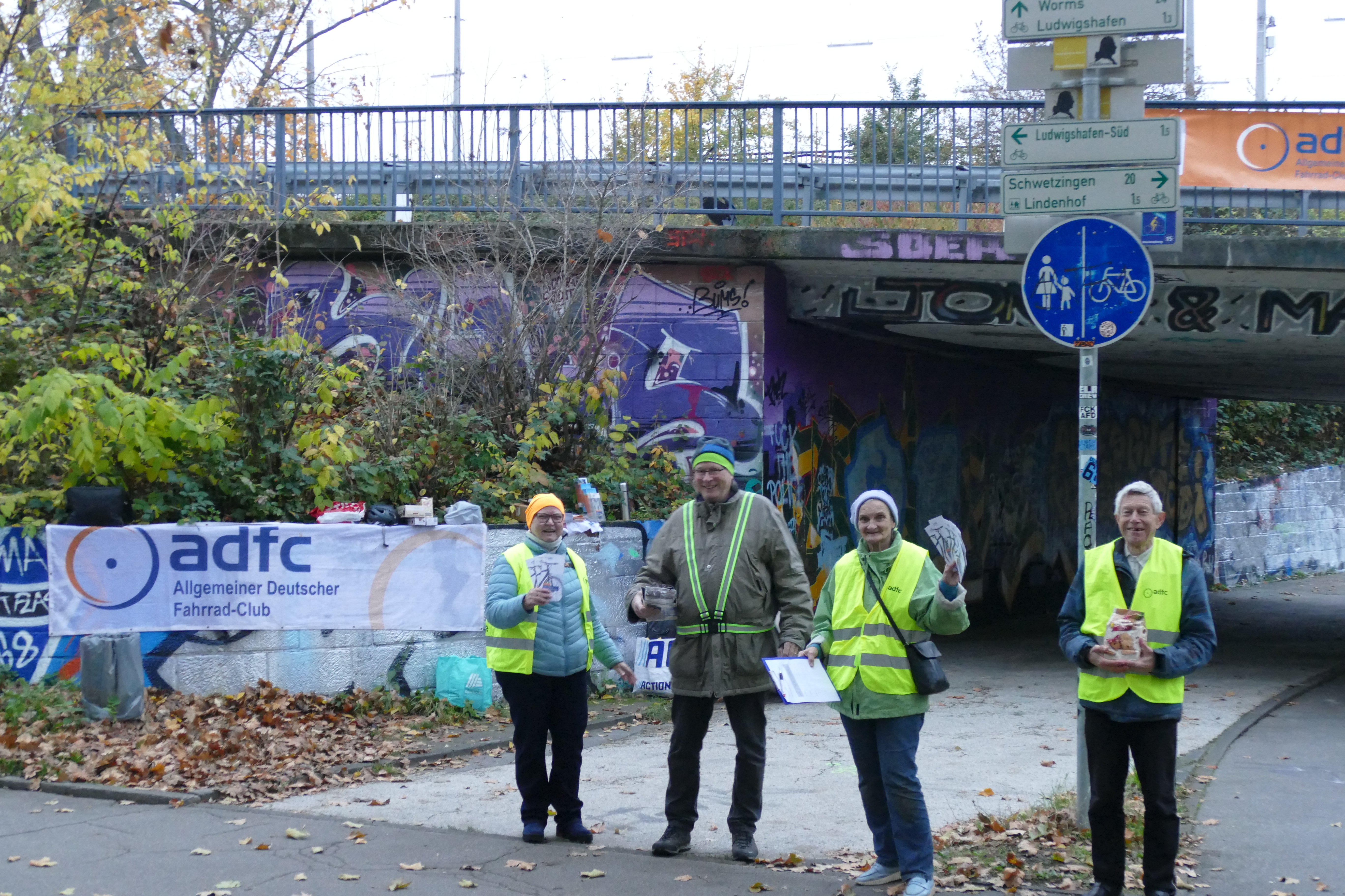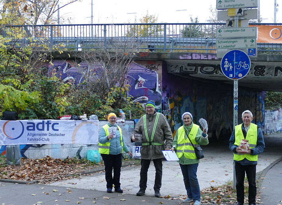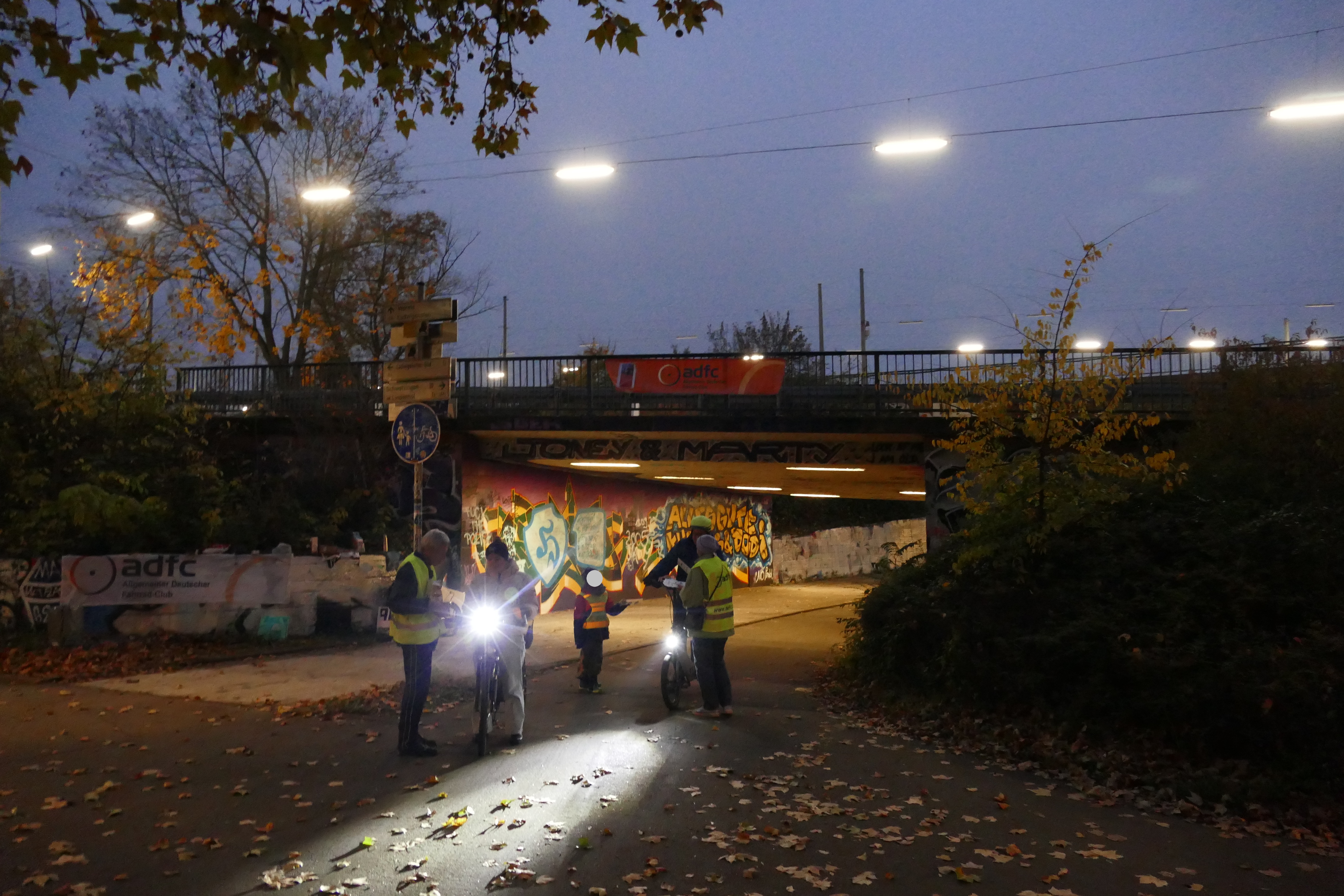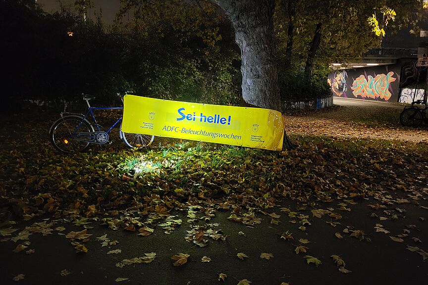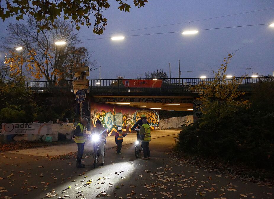 Am Freitagabend (7.11.) stand der ADFC Mannheim erneut an der Mannheimer Zufahrt zur Konrad‑Adenauer‑Brücke, um in der frühen Dunkelheit den Blick auf sichere Fahrradbeleuchtung zu lenken. Zwischen 17 und 19 Uhr begegneten uns 263 Radfahrende, davon hatten 227, das entspricht 86 Prozent, eine funktionierende Beleuchtung montiert.