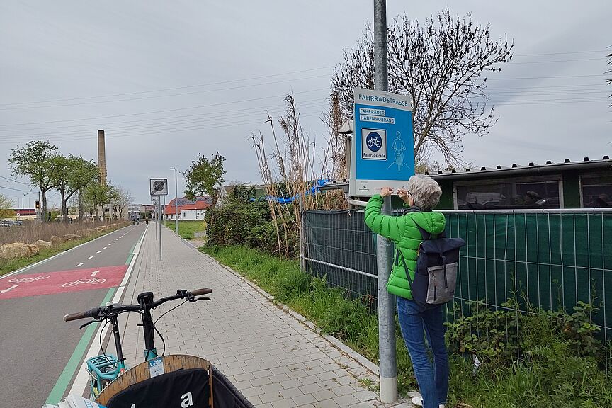 Zum Beginn der Fahrradsaison wurden heute am Freitag, 10.04., vom ADFC wieder Fahrradstraßen-Plakate gehängt.