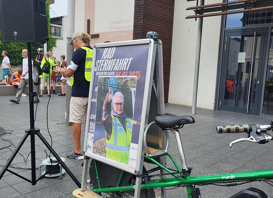 Ein besonders stiller Moment der Veranstaltung galt dem Gedenken an Ingrid Derwis, die am vergangenen Mittwoch in Folge eines schweren Fahrradunfalls verstorben ist. In Mannheim und später auch in Schwetzingen legten die Teilnehmenden der Sternfahrt jeweils eine Schweigeminute zu ihrem Andenken ein.