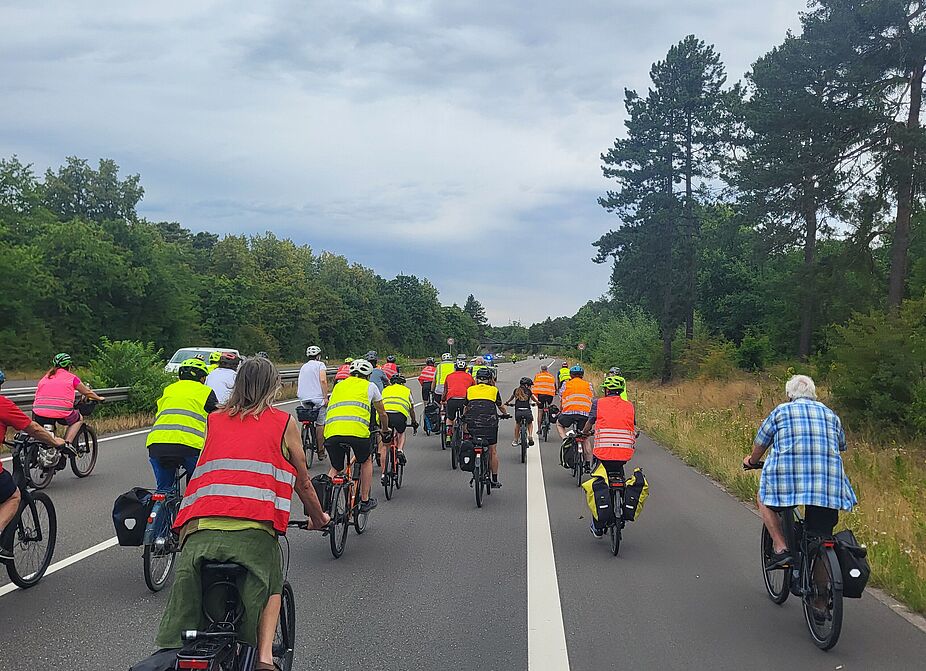 Anschließend formierte sich eine große Raddemonstration mit etwa 400 bis 450 Radfahrenden zur gemeinsamen Rückfahrt nach Mannheim, größtenteils entlang der B36. Ziel war der Ehrenhof am Mannheimer Schloss, wo die Veranstaltung ihren Abschluss fand.