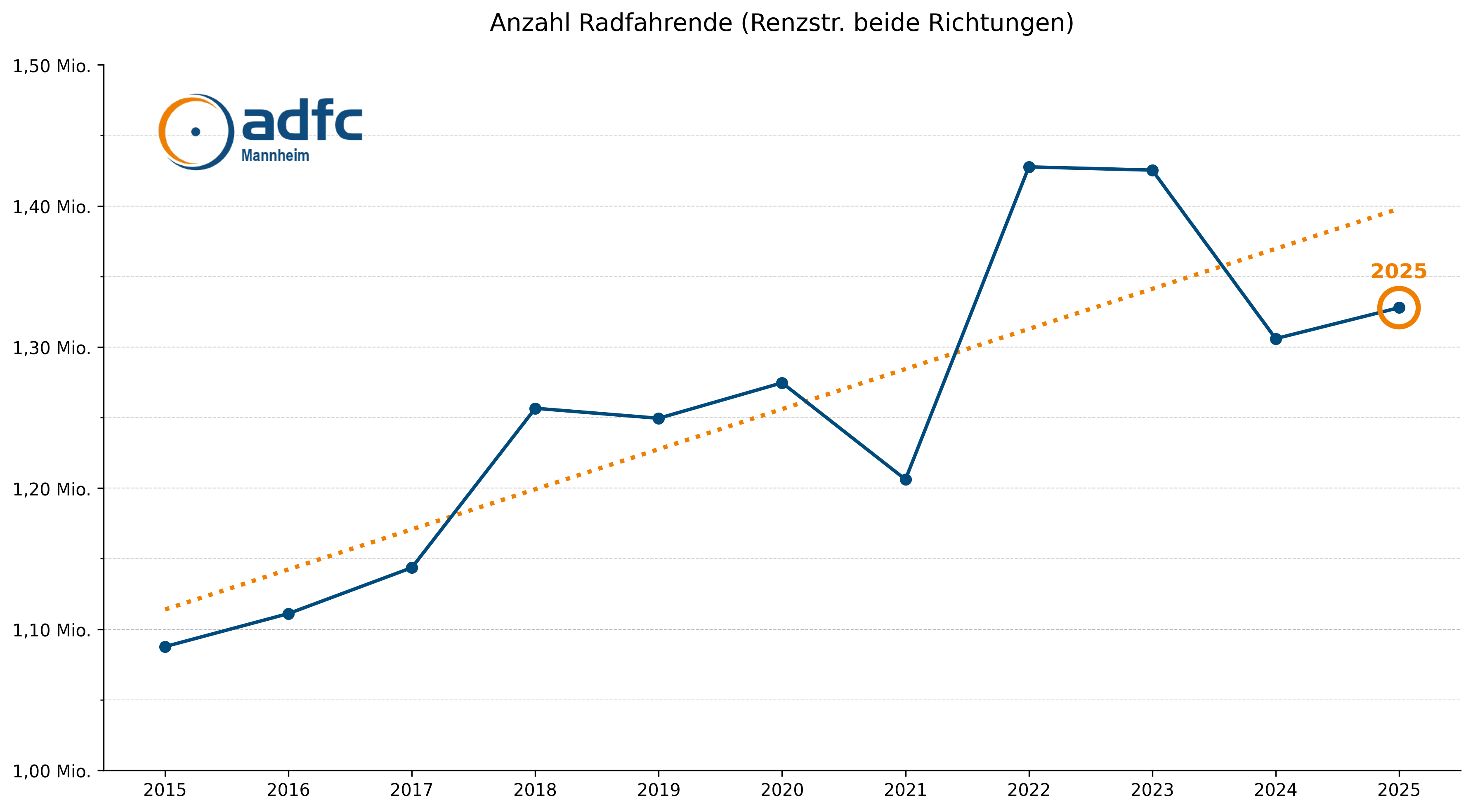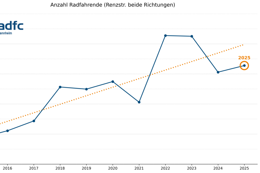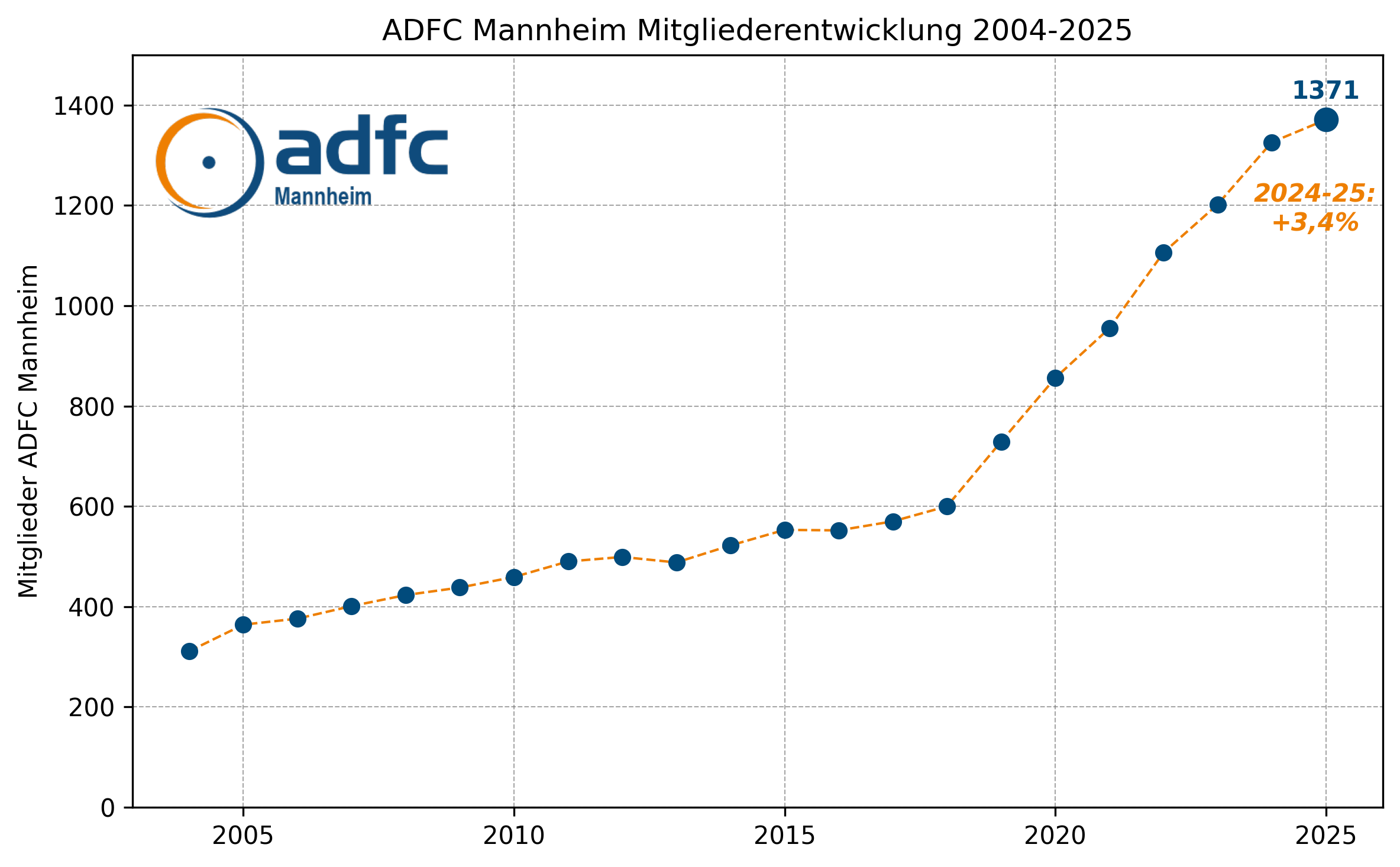 - ADFC Mannheim wächst: Wir freuen uns über mittlerweile 1.371 Mitglieder (Stand Jan. 2025; +3,4% gegenüber 2024)!
